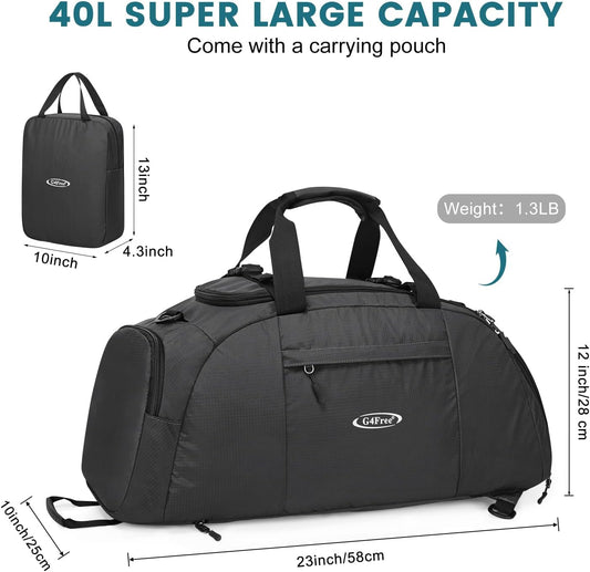 40L 3-Way Duffle Bag Backpack Gym Bag for Men Women Sports Duffel Bag with Shoe Compartment Travel Backpack Luggage